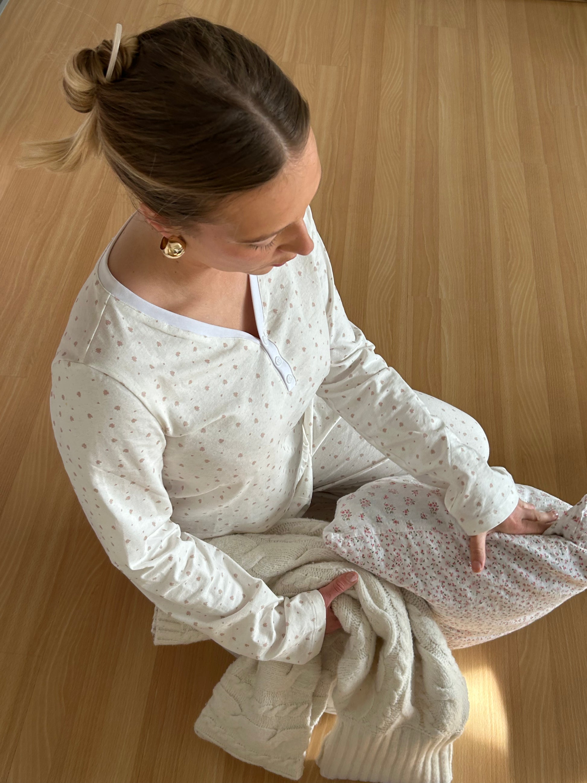 This pajama, longsleeved top is made from 100% soft cotton, they’re lightweight, breathable, super comfy and formfitting at the same time. They are detailed with buttons and extra long and baggy arms for maximum comfort. 🌸